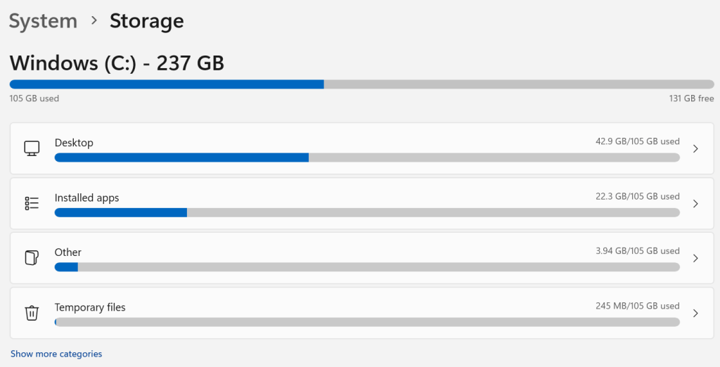 Étape 2 :Après cela, choisissez leStockageoption en vertu duSystèmelanguette.