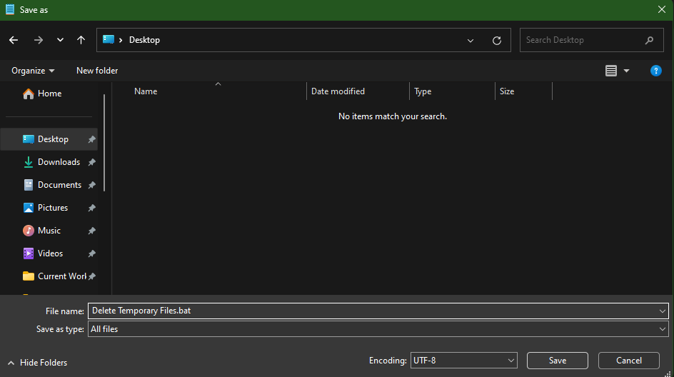 6.Changez le nom du fichier enSupprimer les fichiers temporaires.bat.