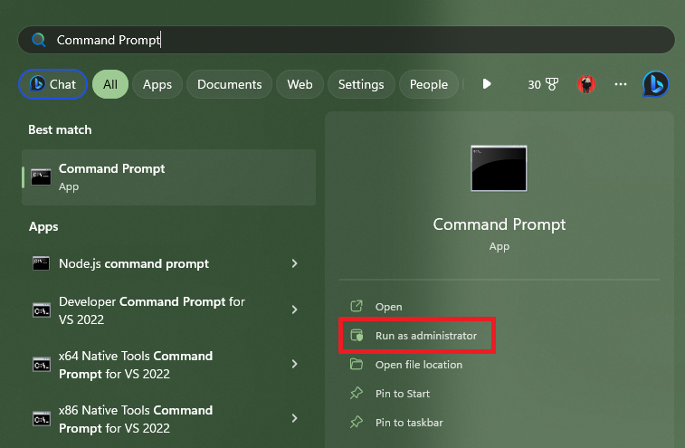 1.Ouvrez la barre de recherche du menu Démarrer et recherchezInvite de commande.