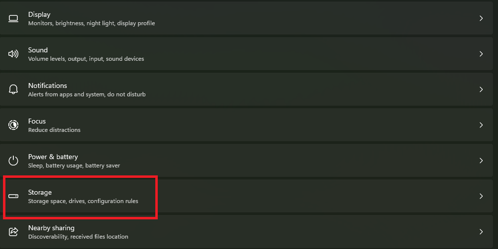 2.Cliquez surStockage.