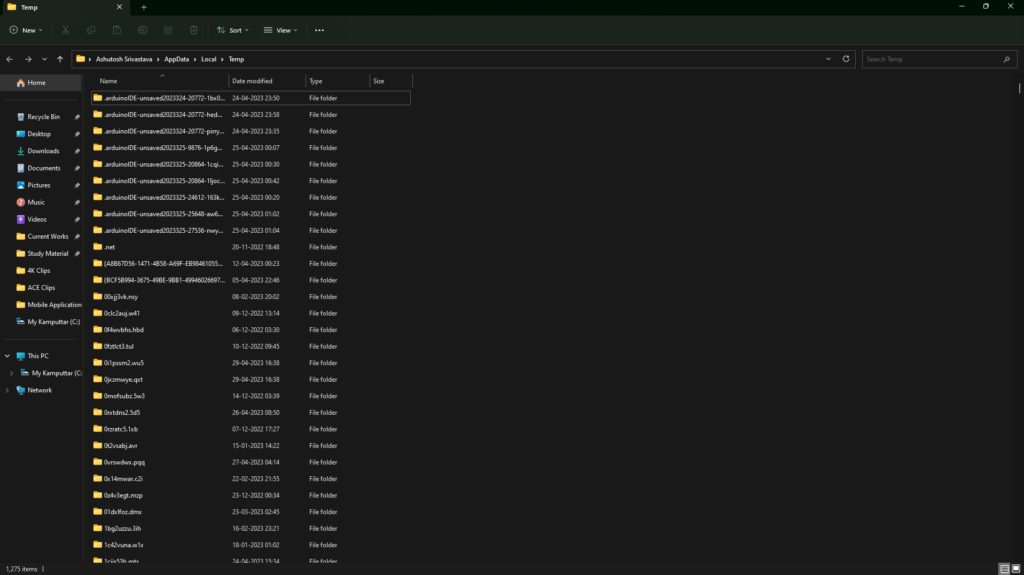3.Cela ouvrira le dossier des fichiers temporaires sur votre système.