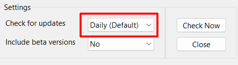 5.Assurez-vous que leVérifier les mises à jourl'option est sélectionnée pourQuotidien (par défaut).