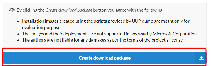 8.Cliquez surSuivantpuis cliquez surCréez un package de téléchargement.