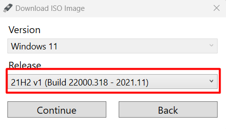 12.Sélectionnez leVersion Windows 11vous souhaitez télécharger dans leLibérersection.