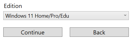 13. Sélectionnez l'édition Windows 11dans le menu déroulant et cliquez surContinuerbouton.