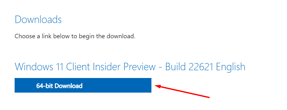 1.Dirigez-vous versTéléchargements de Windows 11 Insider Previewpage.