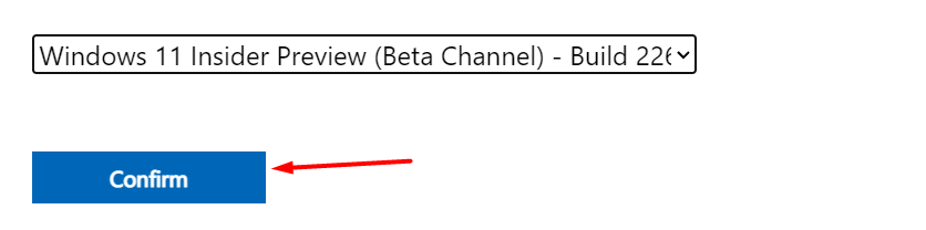 5.SélectionnerWindows 11 Insider Preview (canal bêta) – Build 22621dans le menu déroulant.