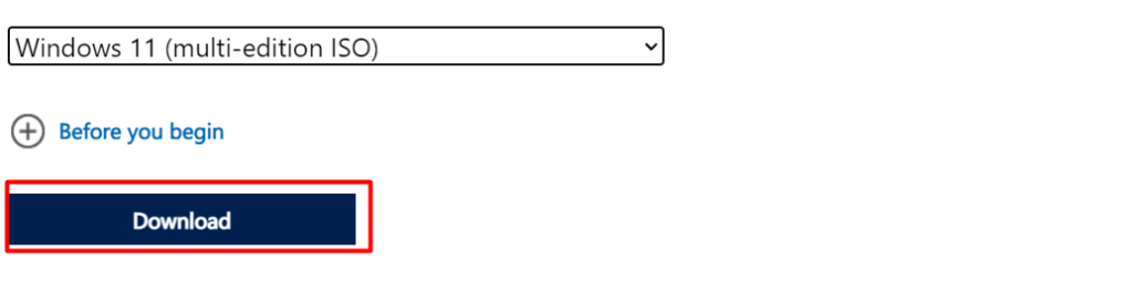 2.Dirigez-vous vers leTélécharger l’image disque Windows 11 (ISO)section.