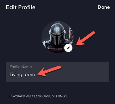 Modification d'un profil Disney Plus sur les appareils mobiles