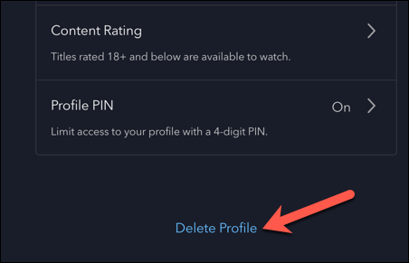 - Faites défiler vers le bas du menu et appuyez surSupprimer le profil.