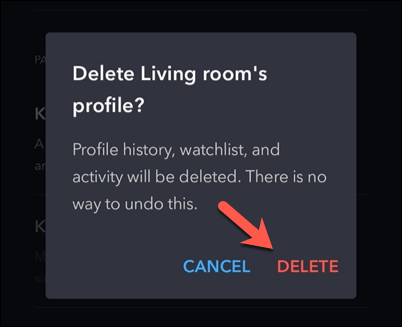- Il vous sera demandé de confirmer votre choix, alors appuyez surSupprimerà nouveau pour supprimer le profil.