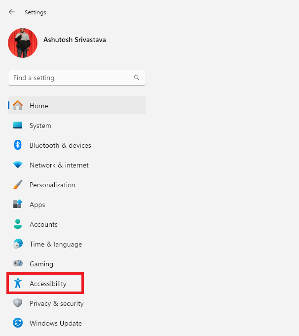 2.Dans l'application Paramètres, cliquez surAccessibilitédu panneau de gauche.