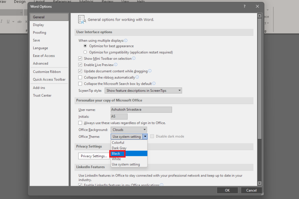 5. Activez le mode sombre dans les applications Microsoft Office