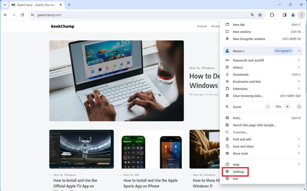 3.Ouvrez les paramètres du navigateur.