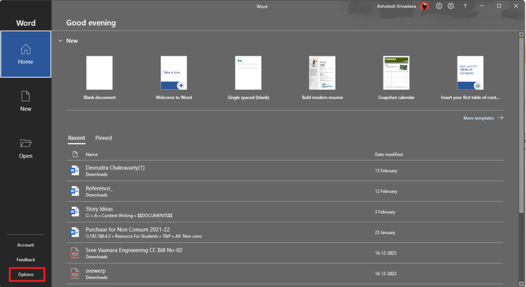L'activation du mode sombre à partir de l'application Paramètres dans Windows 11 n'a aucun impact ni modification sur de nombreuses applications, y compris certaines de Microsoft. Si vous êtes un fervent utilisateur des services Microsoft Office (Word, Excel, PowerPoint et Outlook), vous devez activer le mode sombre à partir de l'une des applications Office elle-même. Suivez ces étapes pour activer le mode sombre dans les applications Microsoft Office :