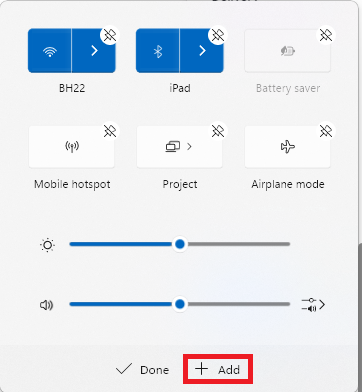 3.Dans le menu Modifier les paramètres rapides, cliquez sur le bouton+ Ajouterbouton.
