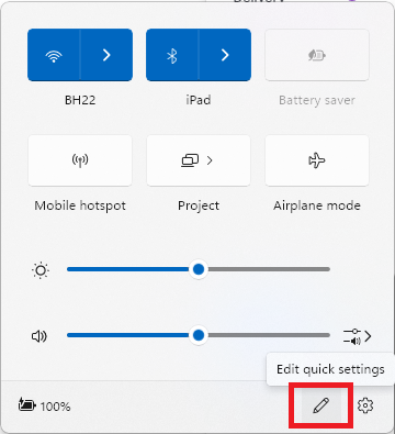 1.PresseGagner+UNdepuis votre clavier pour ouvrir le panneau Paramètres rapides.