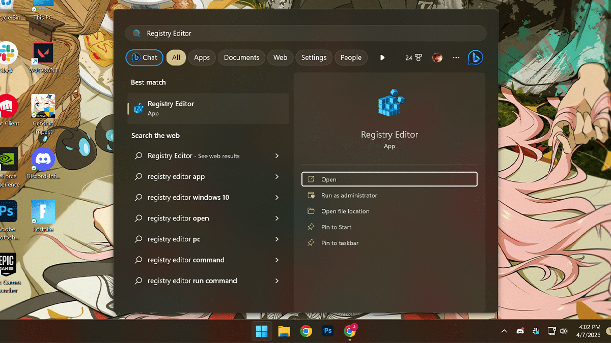 - OuvrirCommencer> rechercherÉditeur de registre> cliquez sur leOuvrirbouton.
