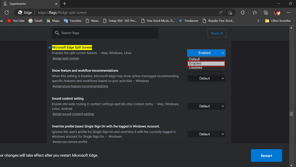 - OuvrirMicrosoft Bord> Tapez le chemin suivant dans la barre d'adresse : edge://flags/#edge-split-screen > appuyez surEntrersur le clavier.