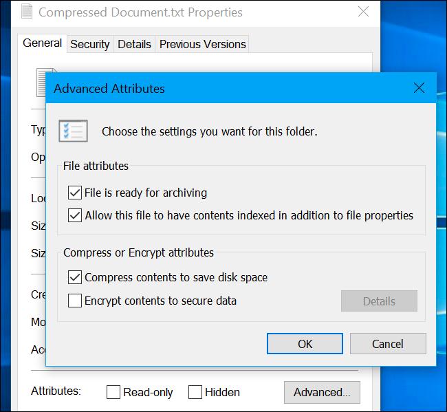 Étape 6 :Pour désactiver la compression des fichiers NTFS sous Windows, choisissez simplement «Activé» dans la fenêtre Propriétés.