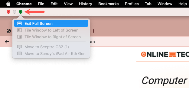 Tout comme pour entrer en mode plein écran dans Chrome, vous pouvez le quitter de différentes manières sous Windows et Mac.