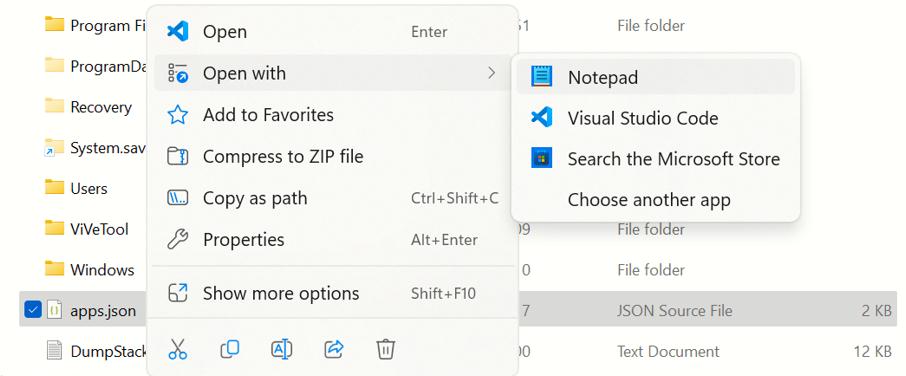 Étape 4 :Appuyez sur leEntrerclé et une liste d'applications au format JSON seront créées sur votre lecteur C.