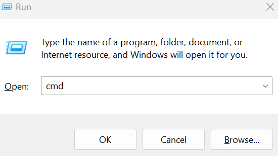 Étape 2 :Tapercmddans leCOURIRcase, puis appuyez surCtrl + Maj + Entréepour ouvrir l'application Invite de commandes en mode Administrateur.