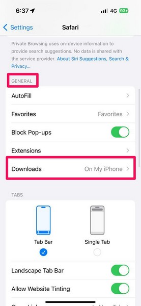 Cependant, il convient de mentionner que cela n'est possible que pour l'application Safari sur votre appareil iOS. Cela dit, vous pouvez suivre les étapes ci-dessous pour modifier l'emplacement de sauvegarde par défaut des fichiers téléchargés sur votre iPhone :