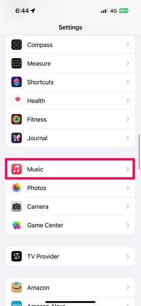 2.Localisez leMusiqueoption sur la liste etappuyez dessus pour ouvrir.