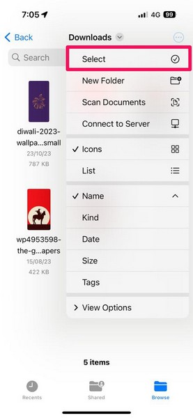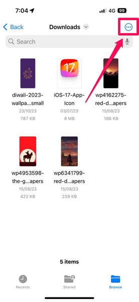 7.Au cas où tu voudraissupprimer plusieurs fichiers téléchargésdepuis votre iPhone, vous pouvezappuyez sur le bouton à trois points (Plus)en haut à droite.