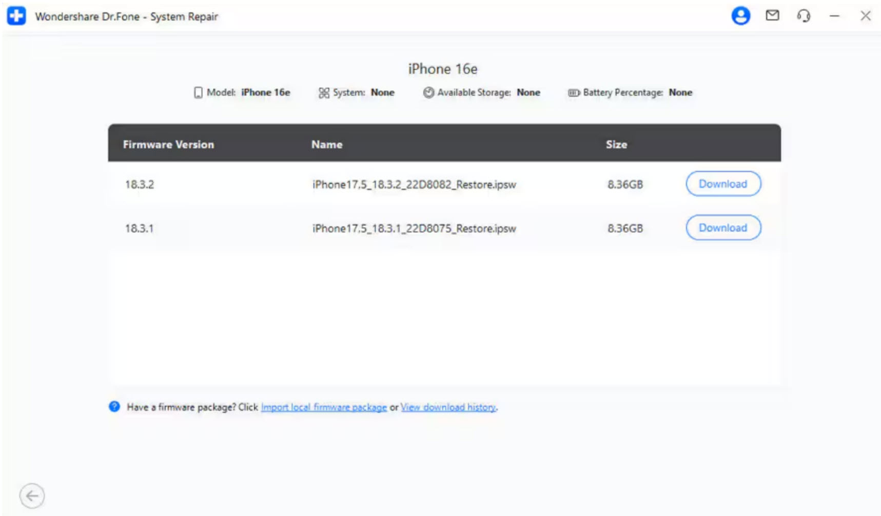 Étape 2. Choisissez le micrologiciel iOS pour réparer l'écran gelé