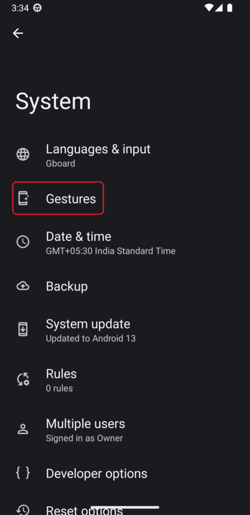 La navigation gestuelle en plein écran est une fonctionnalité qui vous permet d'utiliser tout l'écran en désactivant ces anciens boutons de navigation et en remplaçant leur fonction par des gestes modernes. Cependant, ces gestes peuvent également provoquer des conflits avec le clavier de votre téléphone Android. Par conséquent, désactivez les gestes en plein écran et vérifiez si le problème persiste. Suivez ces étapes pour activer les boutons de navigation sur les téléphones Android :