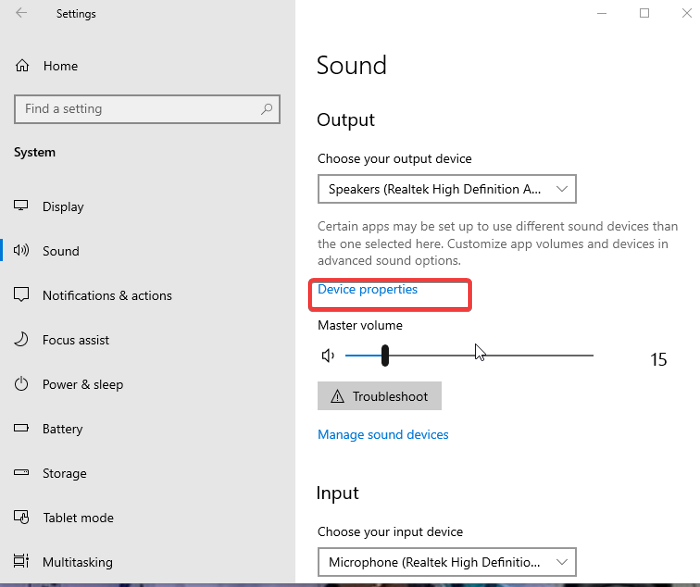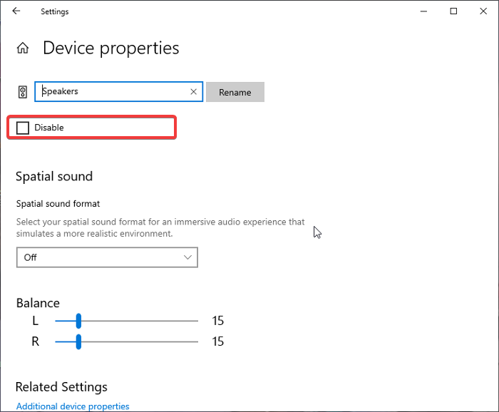 2.Dans la fenêtre Paramètres du son, cliquez surPropriétés du périphériqueet sélectionnezPropriétés supplémentaires de l'appareilsur la page suivante.