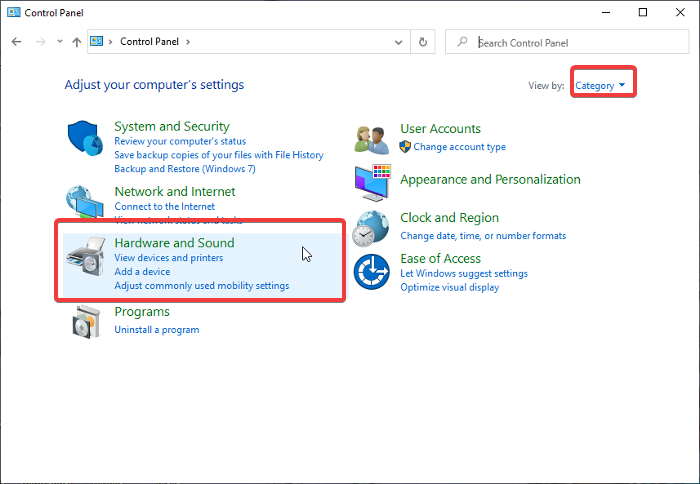 1.RechercherPanneau de contrôledans la zone de recherche Windows et ouvrez-le. Assurez-vous que leAfficher parl'option est définie surCatégorie.