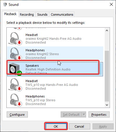 Vous utilisez peut-être un appareil sans fil avec votre ordinateur et vous l'avez oublié. Tant que l'appareil est toujours connecté à votre PC, l'appareil sera le seul à émettre du son. Essayez donc de déconnecter le périphérique audio et voyez si votre problème audio est résolu.