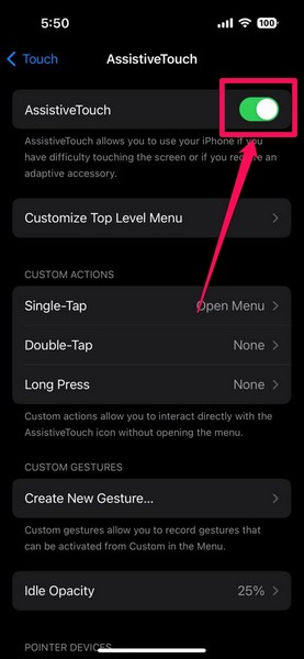 5.Maintenant, assurez-vous que la bascule duAssistanceTouchel'option estéteintsur votre appareil.