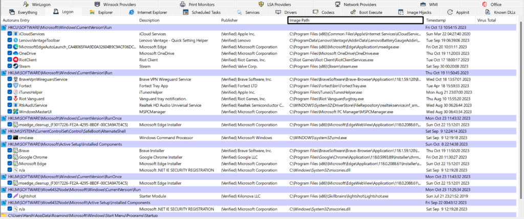 Si l’analyse des logiciels malveillants ne trouve aucun fichier suspect sur votre PC Windows 11, nous vous suggéronsrechercher les clés d'exécution automatiquedessus etsupprimez-lesen utilisant les exécutions automatiques de Windows. En effet, il est possible que les clés d'exécution automatique restantes des applications qui ont déjà été supprimées de votre ordinateur Windows 11 conduisent désormais à ces erreurs irritantes. Afin de rechercher et de supprimer ces clés à l'aide de Windows Autoruns, suivez les étapes ci-dessous :