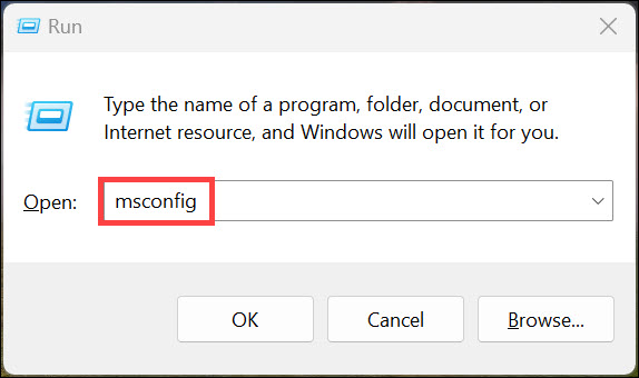 1.Appuyez sur les touches Windows + R pour ouvrir leExécuter l'utilitaireet tapezmsconfig.mscdans son champ de recherche.