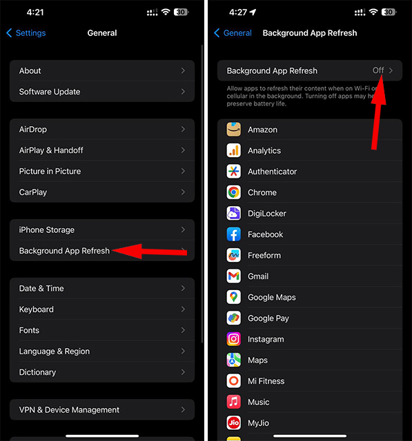 5. Éteignez la rafraîchissement de l'application d'arrière-plan