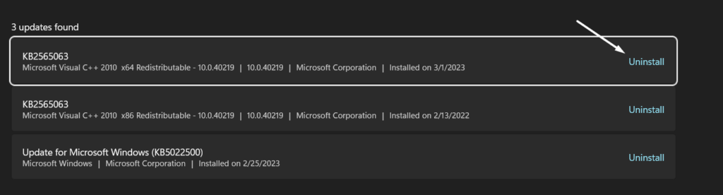 Si c'est le même cas chez vous, nous vous suggéronsdésinstallez la mise à jour conflictuelledepuis votre PC. Suivez les étapes ci-dessous pour ce faire :