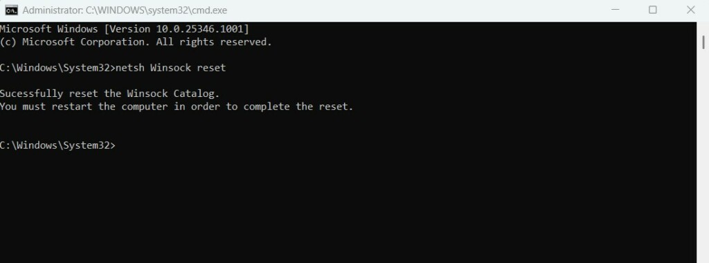 2.Copiez-collez lenetsh Winsock réinitialisercommande dedans et appuyez surEntrerpour l'exécuter.