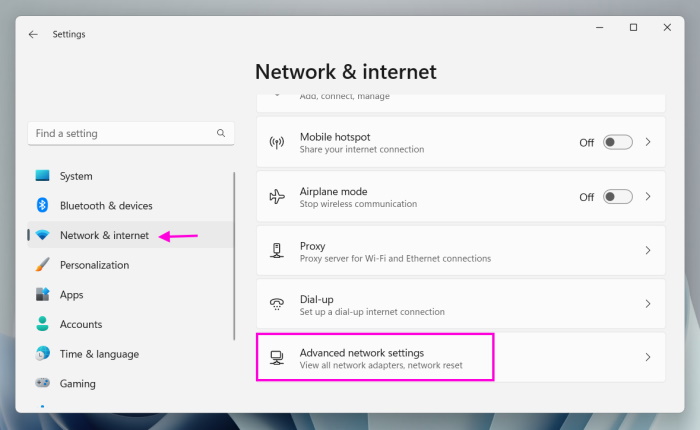 Il est possible que les paramètres réseau de votre PC Windows 11 soient mal configurés, c'est pourquoi ce désagrément apparaît. Ainsi, pour garantir cette chose, nous vous suggéronsréinitialiser les paramètres réseau de votre système Windows 11en suivant les étapes mentionnées ci-dessous :