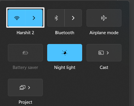 1.Appuyez sur Windows + A pour ouvrir leCentre d'actionet cliquez sur la flèche à côté duWi-Fioption.