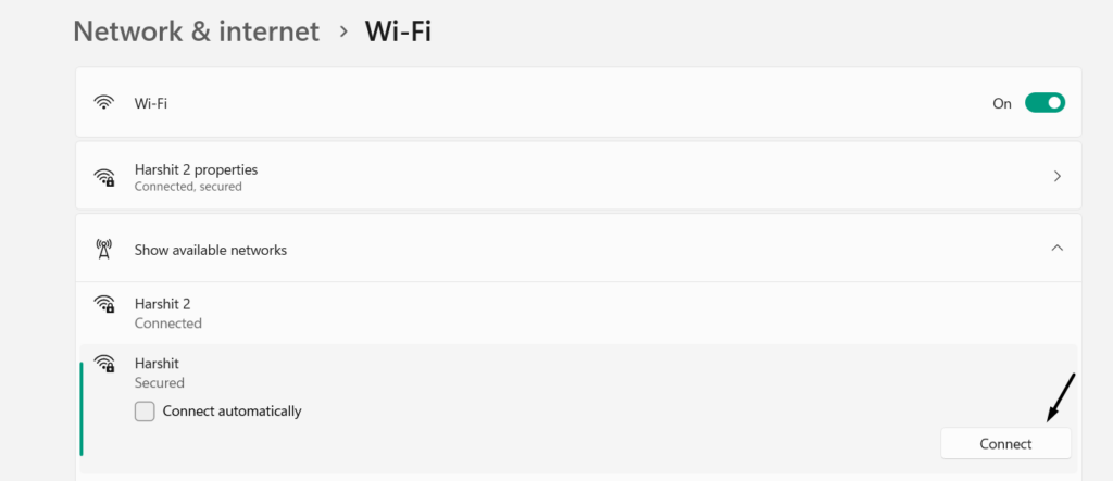 3.Enfin, cliquez surConnecterà côté du réseau pour y connecter votre PC ou ordinateur portable Windows 11.