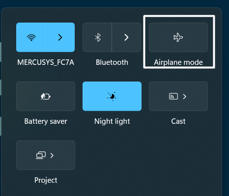 2.Dans le Centre d'action rapide, cliquez surMode avionpour l’activer sur votre ordinateur Windows 11.