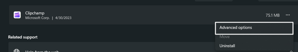 3.Cliquez sur letrois points (…)à côté et sélectionnezOptions avancéesdu menu.