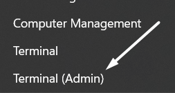 1.Faites un clic droit sur leMenu Démarrerdans la barre des tâches et sélectionnez leTerminal (administrateur)option de celui-ci.