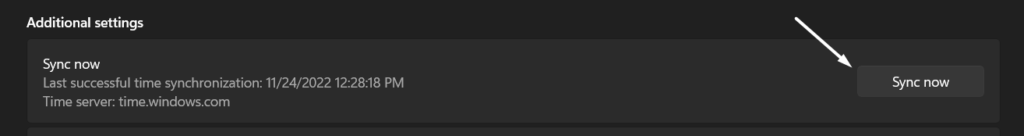 4.Cliquez surSynchronisez maintenantdans leParamètres supplémentairessection pour synchroniser l’heure avec le serveur de Microsoft.