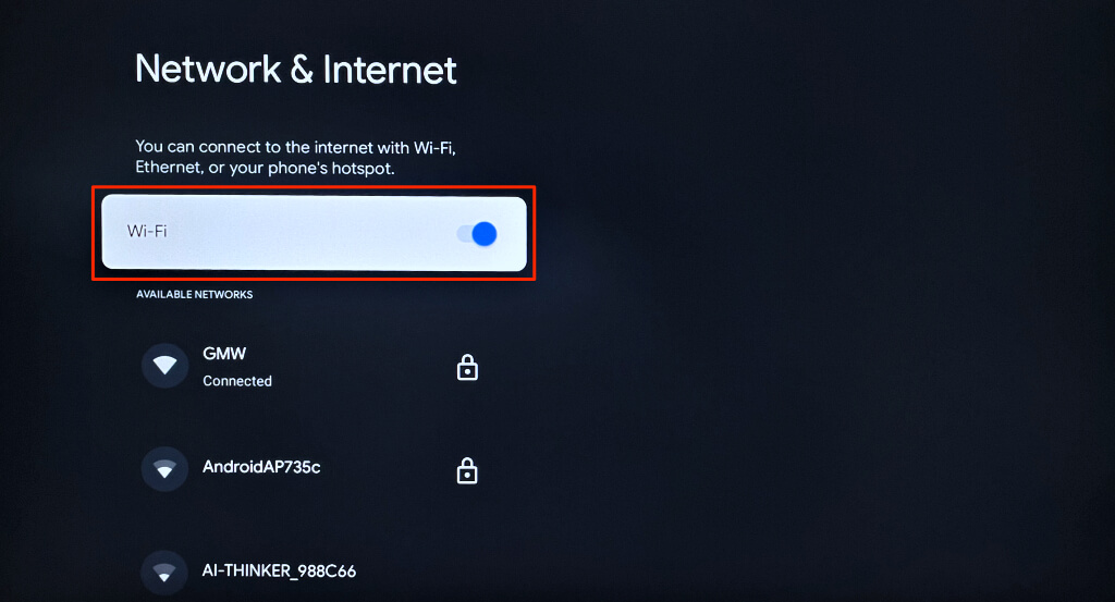 - DésactiverWi-Fi, rallumez-le et attendez que votre Chromecast rejoigne le réseau.