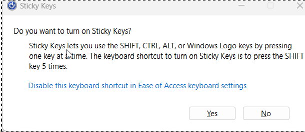 Alternativement, vous pouvez activer les touches rémanentes, appuyer sur la toucheChangementclé 5 fois.
